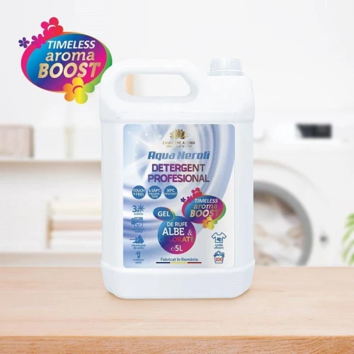 Mai mult decât un detergent profesional: modul cel mai simplu de a alege să îmbraci prospețimea timp de săptămâni întregi! Descoperă detergentul Aqua Neroli și bucură-te de beneficiile speciale ale tehnologiei Timeless Aroma Boost!