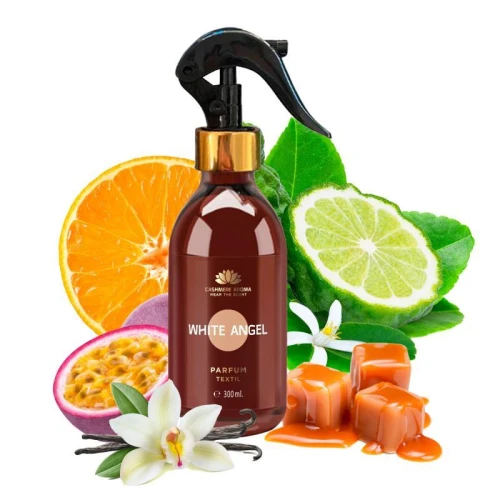 Inspirat din parfumeria fină, parfumul textil ”White Angel” nu conține coloranți, asigurându-te astfel de faptul că riscul de pătare al obiectelor tale vestimentare va fi minimizat. În plus, împrospătează la un cu totul alt nivel nu doar articolele tale vestimentare favorite ci chiar și fiecare cameră a locuinței, cu doar două „pufuri”, astfel încât tu să-ți poți „călători” simțurile în fiecare zi. Beneficiind de note citrice de vârf, cu ajutorul mandarinei coapte și a bergamotei, parfumul textil e echilibrat mai apoi de către aromele fructului pasiunii și-a irezistibilei ciocolate, înainte ca notele de bază să releve caramelul vanilat dulce, aflat în deplină sinergie cu patchouli-ul.