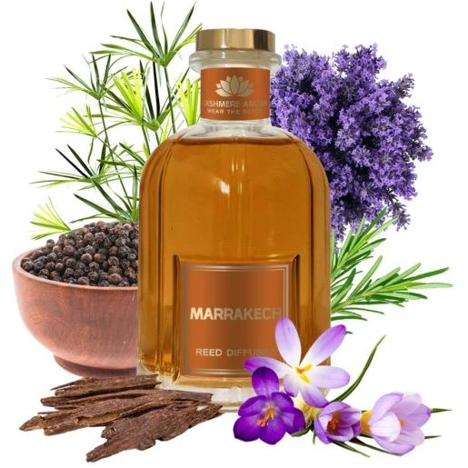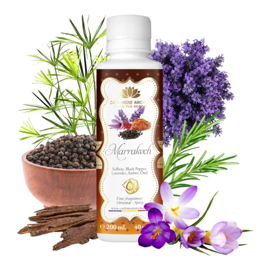 Inspirată din parfumeria fină orientală, aroma Marrakech se deschide cu acorduri prețioase de șofran și piper negru, continuă cu note elegante de lavandă și piele, iar la bază dezvăluie un amestec profund și seducător de papyrus și oud. Rezultatul este un parfum spectaculos, intens, dar echilibrat, care îmbracă textilele, rufele și încăperile într-o atmosferă cu adevărat specială.
